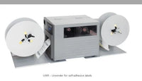 When working as a rewinder it can rewind labels from rolls with a max. diameter of 300 mm, wound facing inwards or outwards, with a core diameter ranging from 46 to 110 mm, onto rolls with a max diameter of 300 mm with face-in or face-out winding. The average rewinding speed is over 50 m/min.