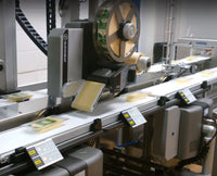 The vacuum belt runs at the same speed as the conveyor and is thus not limited to the print speed of the printer. This gives very accurate label positioning also on extremely light products. Provided the packages has a well-defined edge to trig on, the labeling accuracy is in the area of +/- 0.5 mm.
