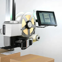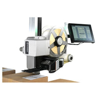 Fast and friendly Logistics Labeling System for labeling shipping labels on top of boxes in various heights.